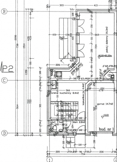 Parter: Pokój dzienny- 26,3m2, Aneks kuchenny: 8,4m2, WC - 1,5 m2, Garaż - 15 m2, Korytarz - 4,4m2, Sień - 2,8m2.